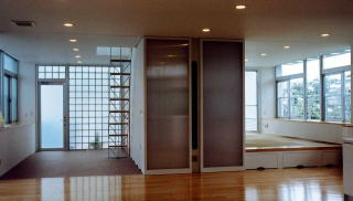 □ クライアントは、とても明るく、楽しい御家族でした。 それは、建て替え前の小さな木造住宅の引戸を全て取り除いた「開放的な暮らしぶり」に この御家族の絆があるように感じました。 この住宅は、「その暮らしの原風景」を継続するように、4LDKが、3枚引戸で、瞬時に 『ONE ROOM』へ変換する、おおらかな空間システムになっています。 玄関ホールは、アスリートの御主人のトレーニングルームに変換できたり、大人のロフト 子供のロフトがあったり、空間も楽しい構成になっています。 □ 2004年 鉄筋コンクリート造 2階 沖縄県那覇市