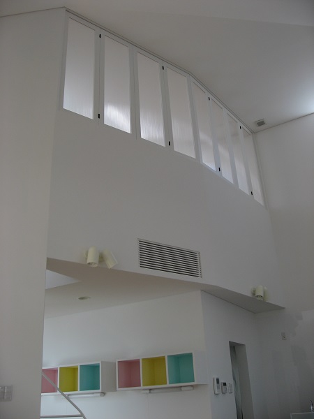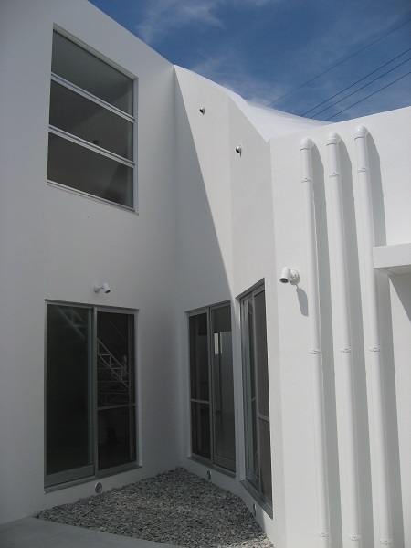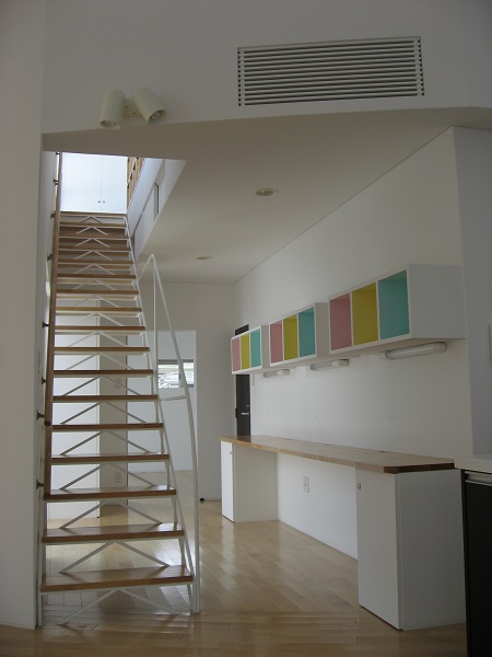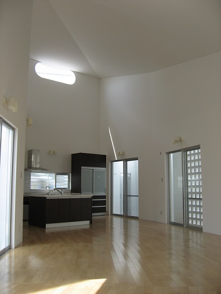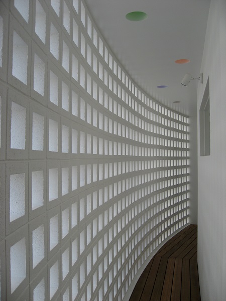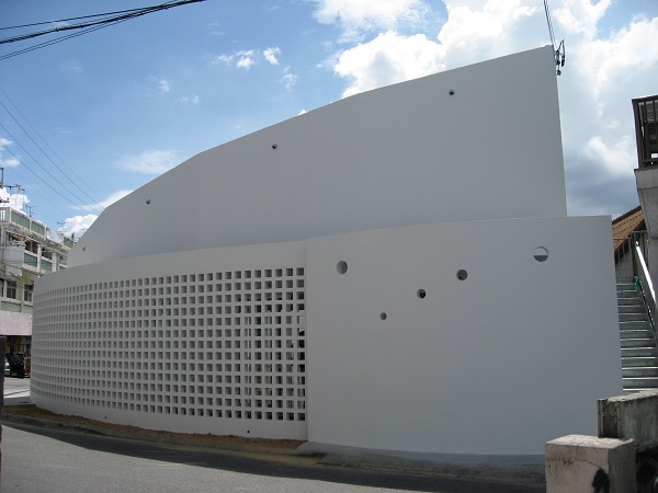 □ 『LIGHTS(光達)』は、造語です。 この住宅は、結果、幾つかの種類の違う『光を楽しむ家』になりました。 工事中に出会った「楕円形のトップサイドライト」から差し込む光が、最初でした。 うねり回転していく天井を照らす光が、とても美しかったのを、覚えています。 ここから差し込む光は、驚いたことに、時間や天候によって、表情を変え、2階の 子供室からは、光のグラデーションが楽しめます。ここで成長していく子供達は、何に 見えているのでしょうか? また、穴開きブロックで囲まれた半屋外の回廊の光、その回廊の屋根にランダムに配置 した、琉球ガラスから差し込むカラフルな光、様々な『LIGTTS(光達)』は、この街 中の日常に、自然を感じさせてくれます。 □ 2008年 鉄筋コンクリート造 2階 沖縄県浦添市