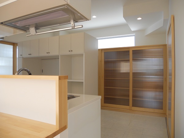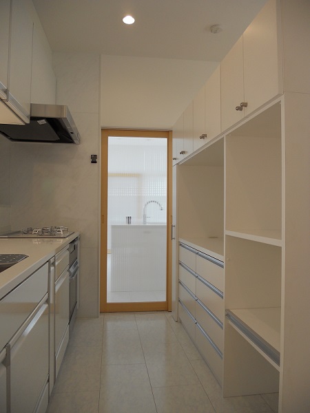 今回、キッチン収納・衣類収納を、奥様と事こまめに打合せをし、オリジナル収納棚により、充実した収納量
