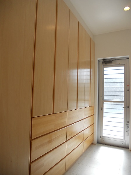 また、衣類の収納で、大きな特徴は、洗面室に大きな箪笥のようなクロゼットを創り、そこに家族の普段着を