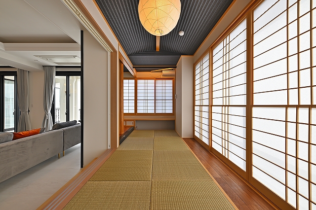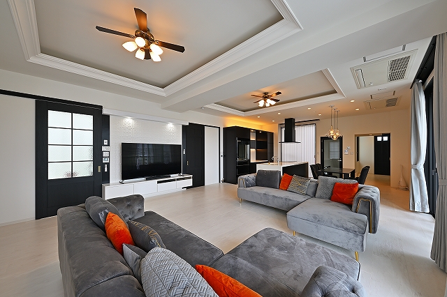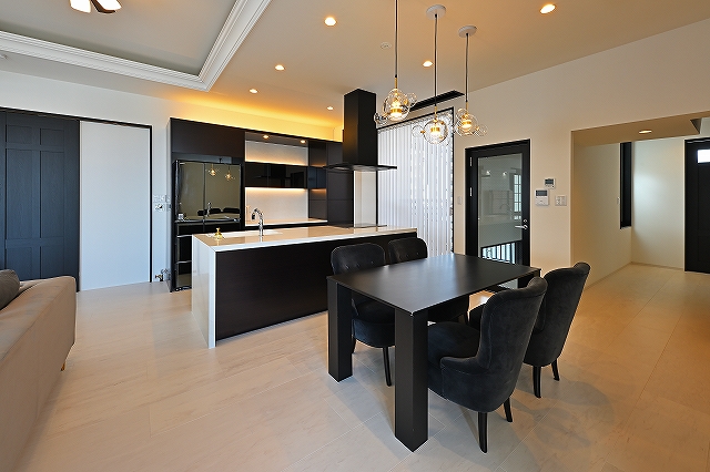 □ 街の景色を眺めながら、モノトーンの空間を演出しています。