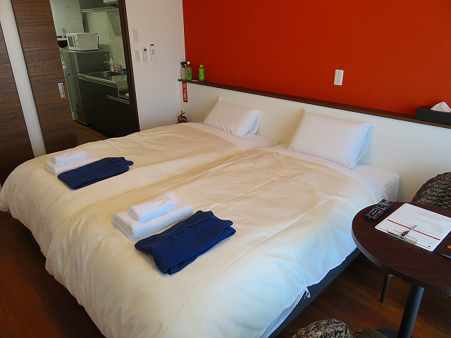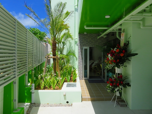 □ 長期滞在可能な家電製品を備えたホテルです。アクセントカラーのグリーンは、クライアントの好きな色で、石垣島の