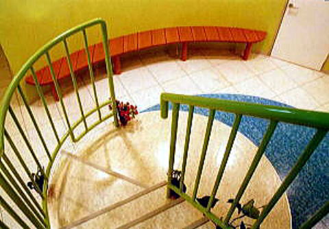 既存の螺旋階段を、『水盤に浮いている様な階段』として演出しました。また、この