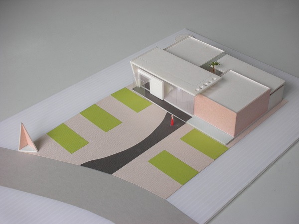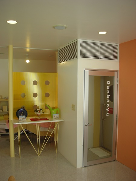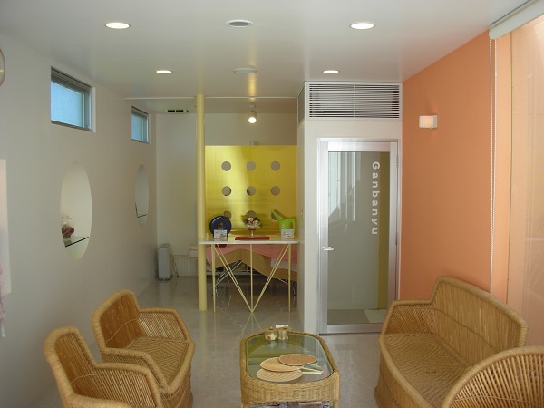 □ 海に程近い、静かな場所にある岩盤浴です。 □ 女性専用の岩盤浴であるので、エレガントな空間をデザインしました。 平面計画は、パティオ(中庭)を囲みながら、それぞれの機能を持つ4つの箱が、風車 状に配置しています。 □ 外観は、象徴的なサーモンピンクの箱を、透明感のある大きな庇が覆う様相で、硝子越 しに、見えるパティオの樹木と前面のヤシが、南国らしい演出を付加しています。 □ インテリアは、「清潔感のある白い空間」と「サーモンピンクの箱」と「透明な硝子」 で、明確な空間構成を表現しています。 □ 2006年 鉄筋コンクリート造 平屋 沖縄県中頭郡読谷村