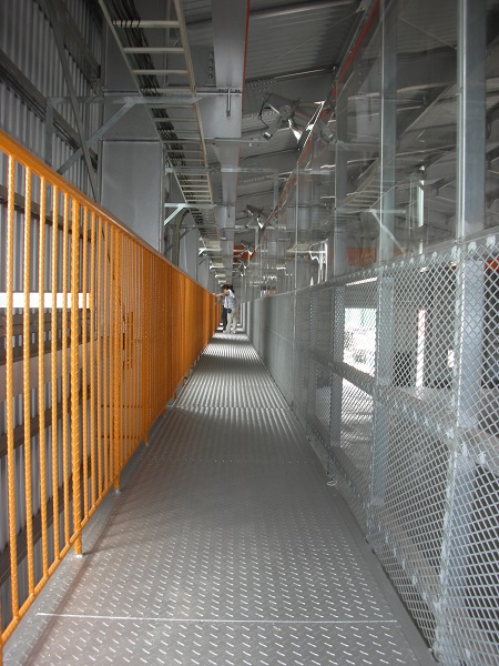 この工場は、その過程を見学できるアプローチデッキを配置しています。小学校から、